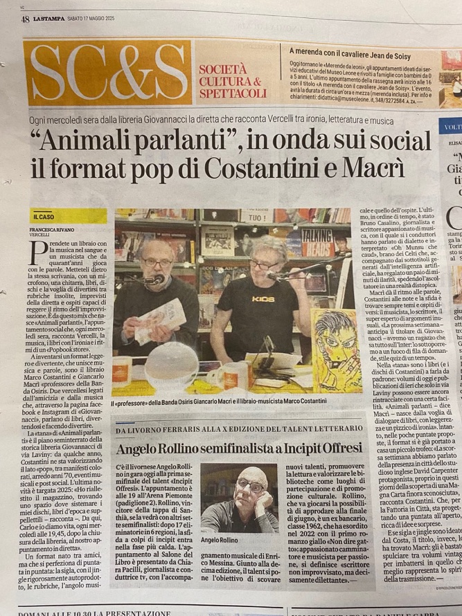 FB e IG della libreria, tutti i mercoledì alle 19:40 Trasmette dalla Libreria Giovannacci downstairs